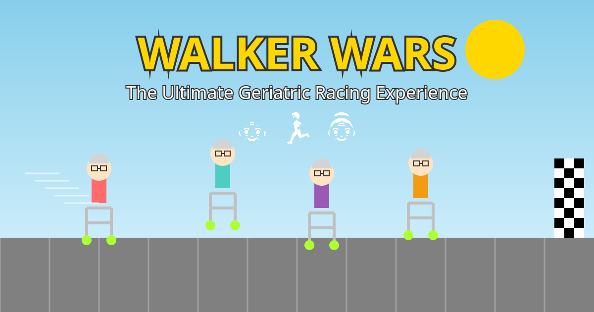 Race to the finish line on your walker! Tap to shuffle faster, avoid obstacles, beat the competition.