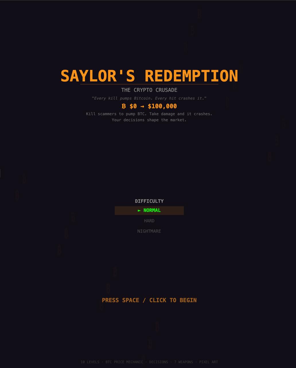 You are Michael Saylor, the last true Bitcoiner. Armed with the Bitcoin Blaster and six other crypto-powered weapons, fight through 10 procedurally generated levels to restore the blockchain.