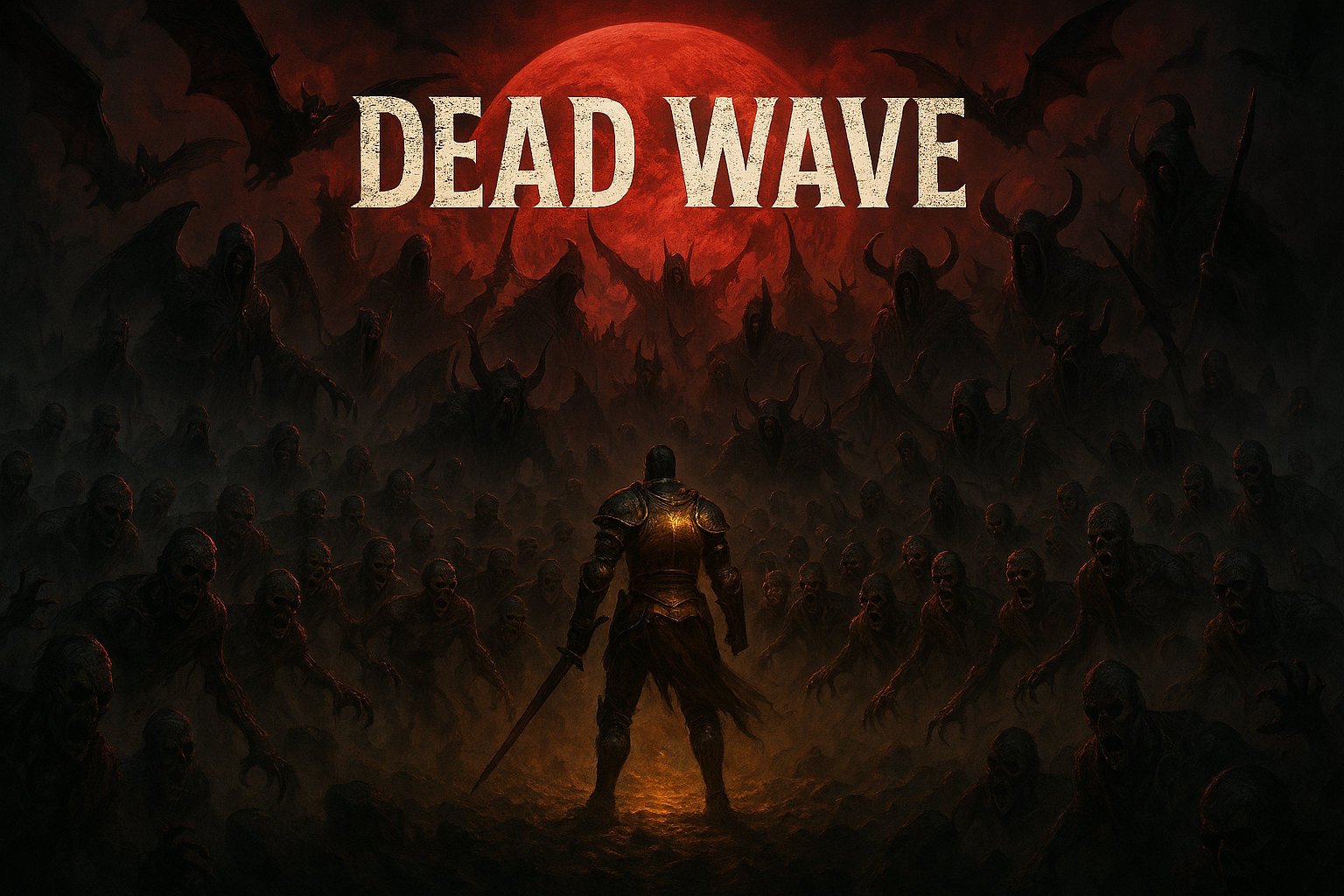 DEAD WAVE is a hardcore auto-shooter survivor. Fight through endless hordes of 9 enemy types — bats, ghosts, skeletons, chargers, exploders and reapers. A boss arrives every 60 seconds. It only gets worse.
