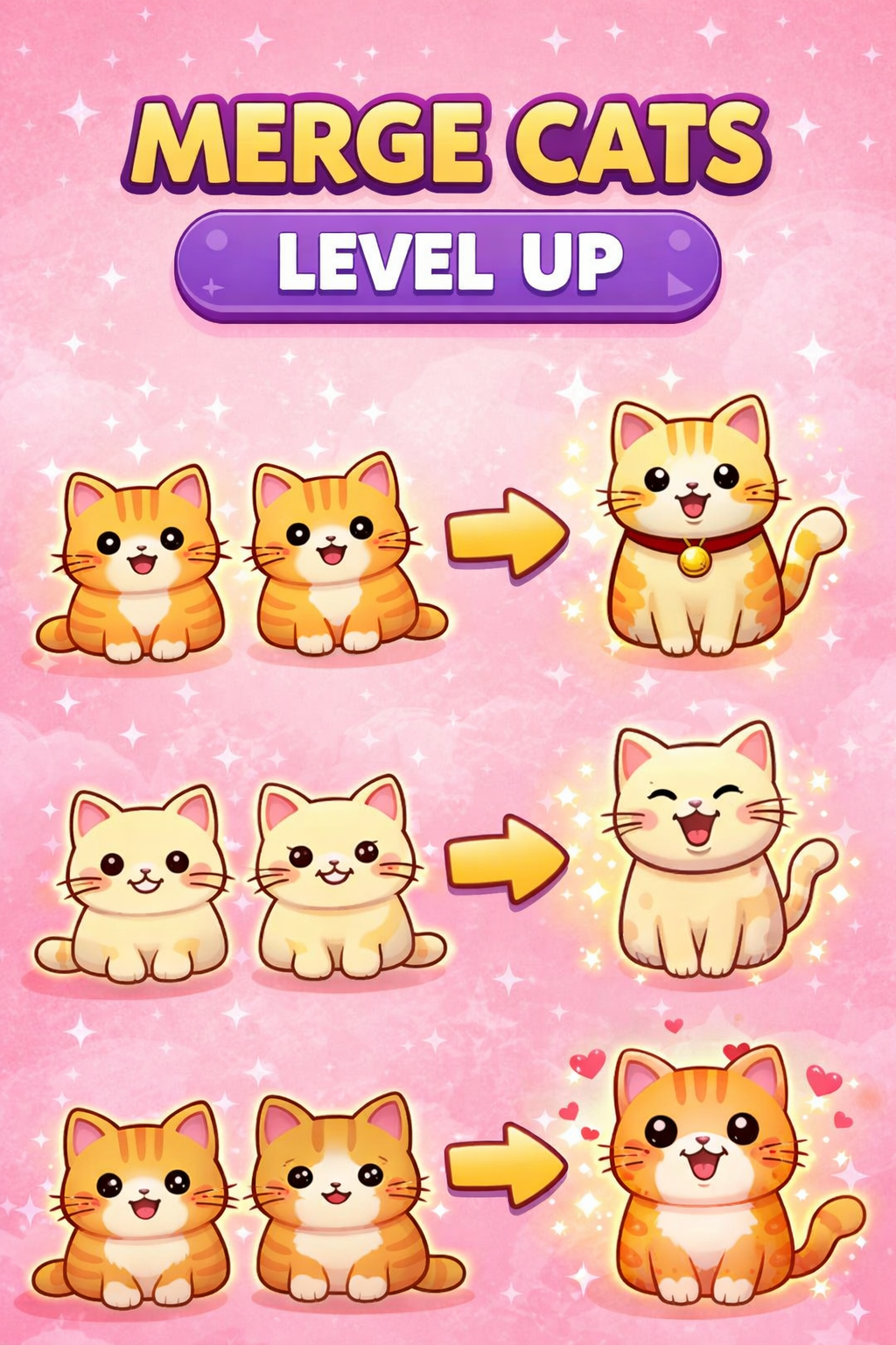 Merge Cats Ultimate is a fast-paced falling merge puzzle game where players combine identical cats to evolve them up to level 370. Each merge earns coins, score, and XP, while difficulty increases with every level through faster pressure, higher-tier spawns, and tougher board management. Features include combo multipliers, coin economy, spawn system, level progression, auto-save, and challenging game-over mechanics.
